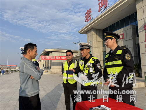 在腾博高速公路老河口服务区,民警和路管人员发放宪法宣传册,面对面进行宪法讲座,并现场答疑解惑,向过往司乘人员介绍宪法、道路安全知识、道路违章预防、交通事故处理等相关知识。特别是针对卡车司机群体,民警通过生动的案例法制教育结合真实案件,深入剖析疲劳驾驶、超速驾驶、绑扎乘客、违章停车等违法行为的安全风险,讲解法律依据和重要要点。让司乘人员在交通休息期间学习实用的法律知识,切实提高司乘人员的法律意识和安全交通理念。